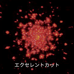 反射したレーザー光線の点の数は圧倒的に O. E. カットダイヤモンドのほうが多かったのです。(反射点数は約2倍)中心から外側までまんべんなく反射していることがわかります。